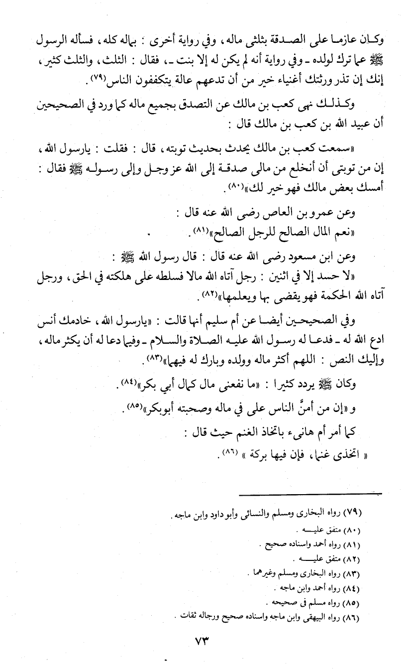 وكذلك نهى كعب بن مالك عن التصدق بجميع ماله كما ورد في الصحيحين أن عبيد الله بن كعب بن مالك قال: