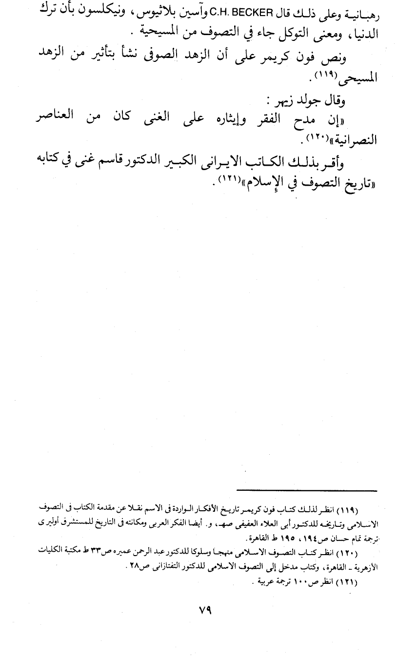 (¬1) انظر لذلك كتاب فون كريمر تاريخ الأفكار الواردة في الاسم نقلا عن مقدمة الكتاب في التصوف الإسلامي وتاريخه للكتور أبي العلاء العفيفي صهـ , و. وأيضا الفكر العربي ومكانته في التاريخ للمستشرق أوليري ترجمة تمام حسان ص 194 , 195 ط القاهرة.
