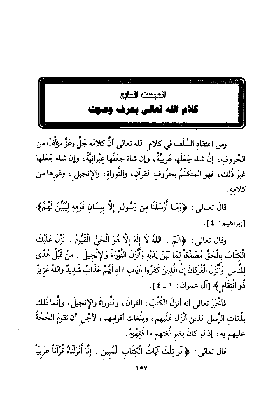 المبحث السابع: كلام الله تعالى بحرف وصوت