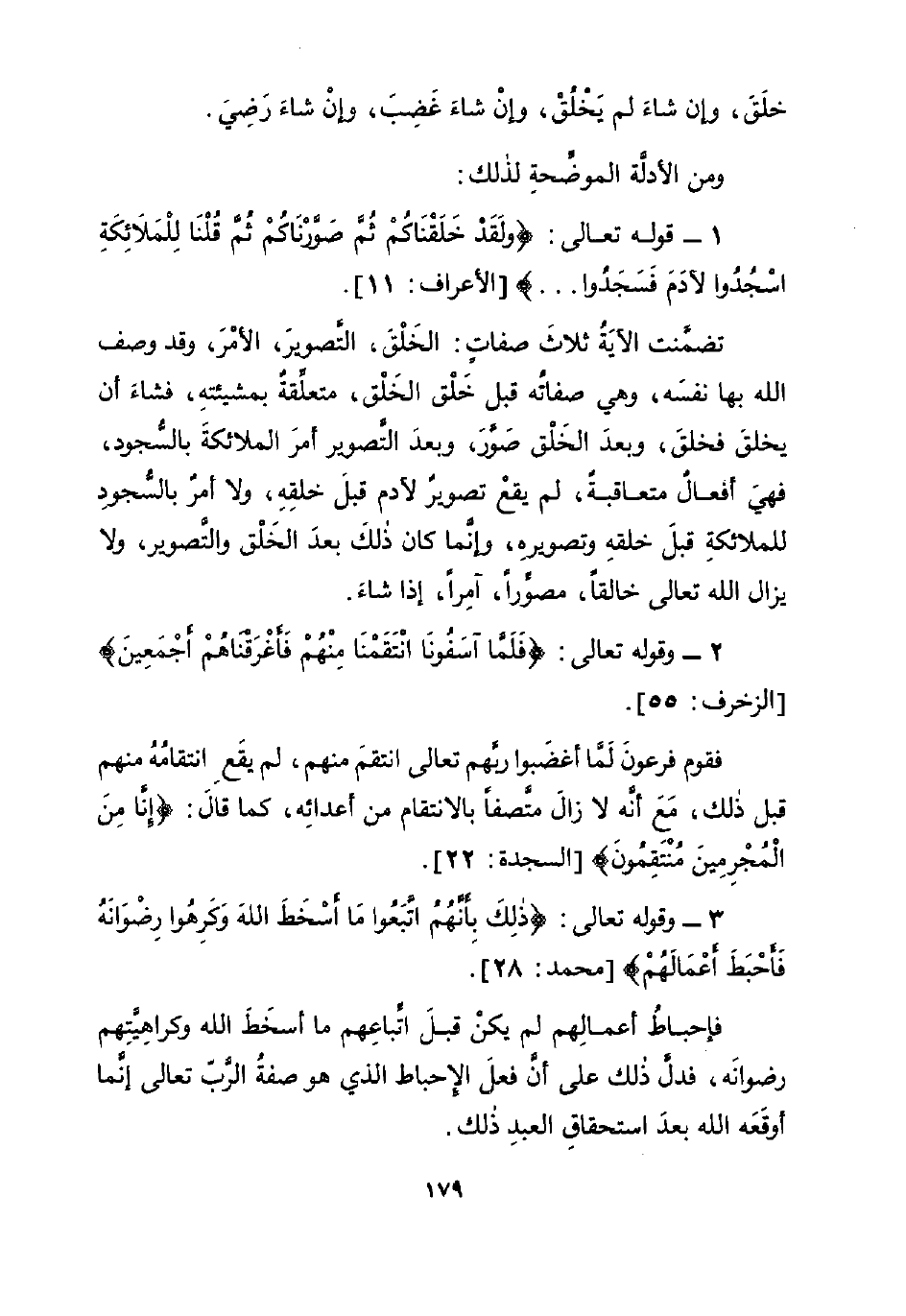 تضمَّنت الآيَةُ ثلاثَ صفاتٍ: الخَلْقَ، التَّصويرَ، الأمْرَ، وقد وصف الله بها نفسَه، وهي صفاتُه قبل خَلْق الخَلْق، متعلَّقةٌ بمشيئتهِ، فشاءَ أن يخلقَ فخلقَ، وبعدَ الخَلْق صَوَّرَ، وبعدَ التَّصوير أمرَ الملائكةَ بالسُّجود، فهيَ أفعالٌ متعاقبةٌ، لم يقعْ تصويرٌ لآدم قبلَ خلقِهِ، ولا أمرٌ بالسُّجودِ للملائكةِ قبلَ خلقهِ وتصويرهِ، وإنَّما كان ذلك بعدَ الخَلْق والتَّصوير، ولا يزال الله تعالى خالقاً، مصوِّراً، آمِراً، إذا شاءَ.
