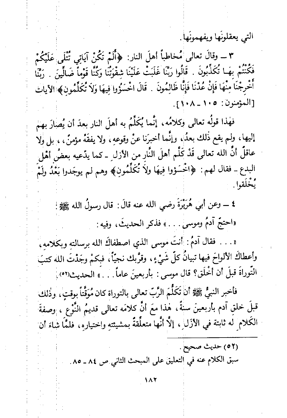 فأخبر النبيُّ -صلى الله عليه وسلم- أن تَكَلُّمَ الرَّبّ تعالى بالتوراة كان مُوَقَّتاً بوقتٍ، وذلك قبلَ خلقِ آدم بأربعينَ سنةً، هذا معَ أنَّ كلامَه تعالى قديمُ النَّوْعِ، وصفةَ الكَلامِ له ثابتة في الأزَلِ، إلاَّ أنَّها متعلَّقةٌ بمشيئتهِ واختيارهِ، فلمَّا شاءَ أن