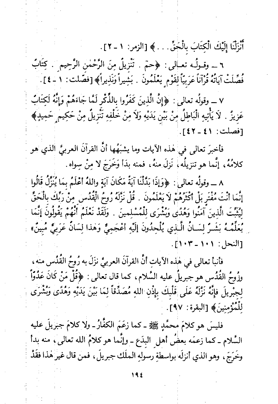 فأخبرَ تعالى في هذه الآيات وما يشبَهُها أنَّ القرآنَ العربيَّ الذي هو كلامهُ، إنَّما هو تنزيلُه، نَزلَ منهُ، فمنه بدَأ وَخَرَجَ لا مِنْ سِواه.