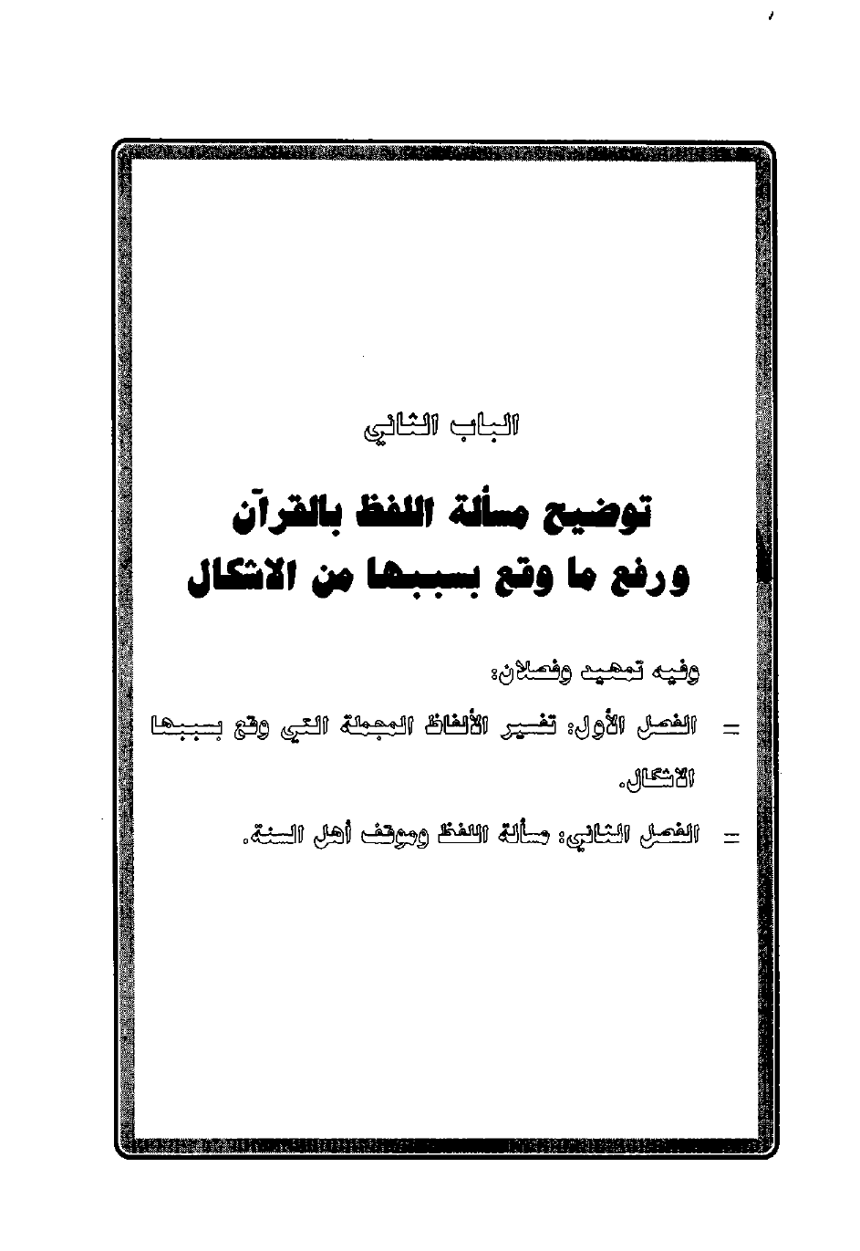 الباب الثاني: توضيح مسألة اللفظ بالقرآن ورفع ما وقع بسببها من الاشكال