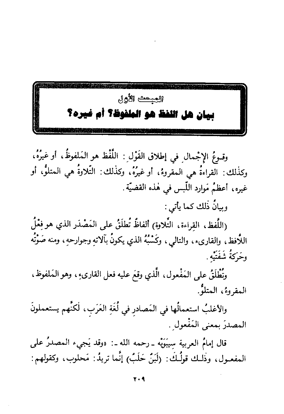 المبحث الأول: بيان هل اللفظ هو الملفوظ؟ أم غيره؟
