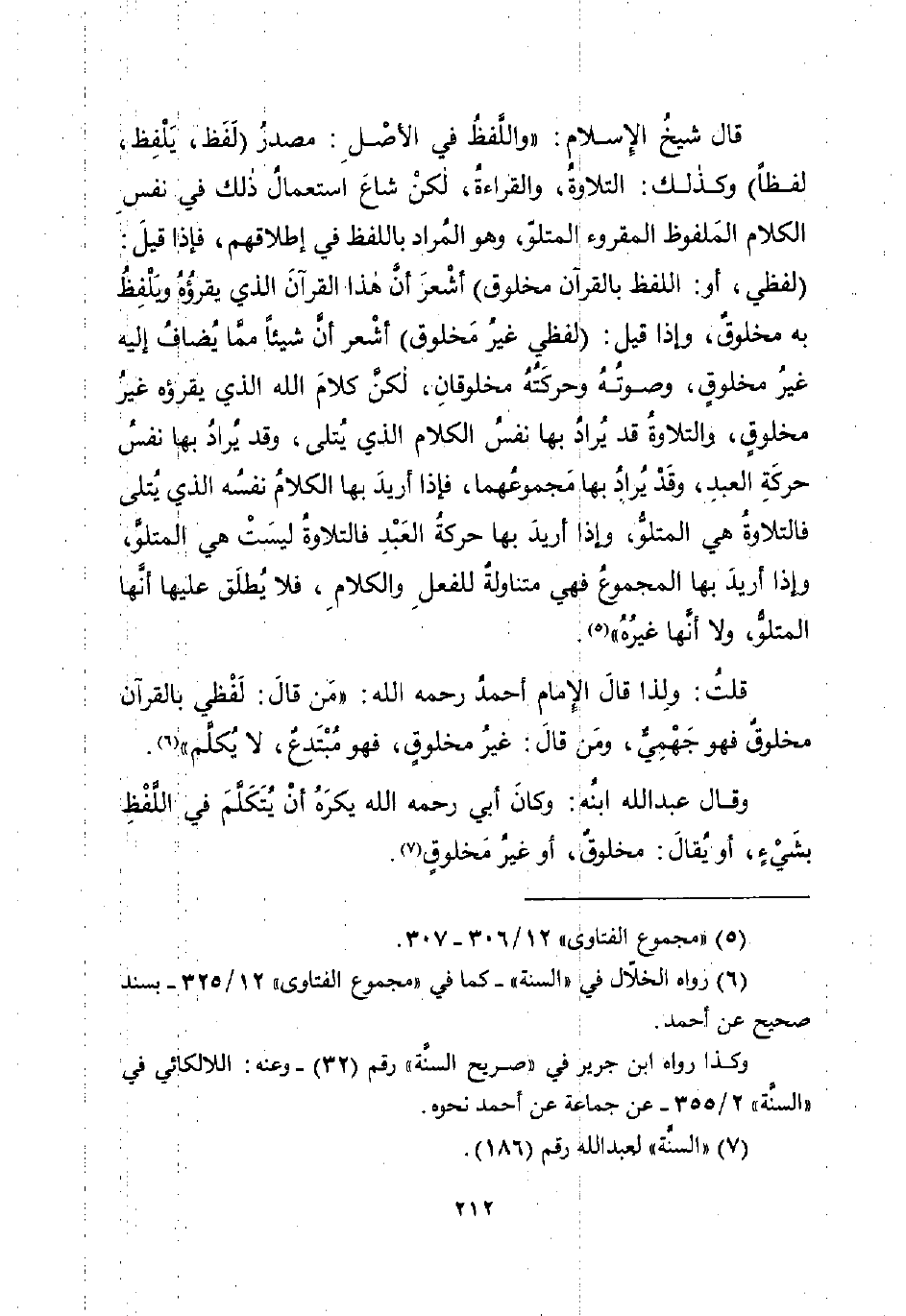 (¬6) رواه الخلاّل في "السنة" -كما في "مجموع الفتاوى" 12/ 325 - بسند صحيح عن أحمد.