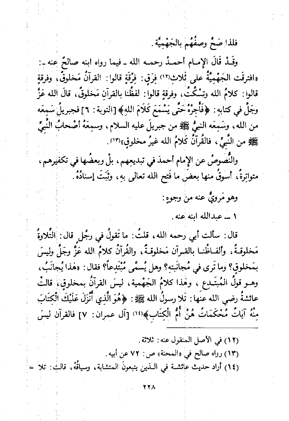(¬13) رواه صالح في "المحنة" ص: 72 عن أبيه.