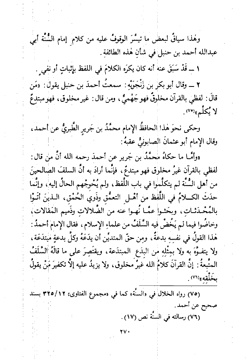 (¬75) رواه الخلال في "السنَّة" كما في "مجموع الفتاوى" 12/ 325 بسند صحيح عن أحمد.