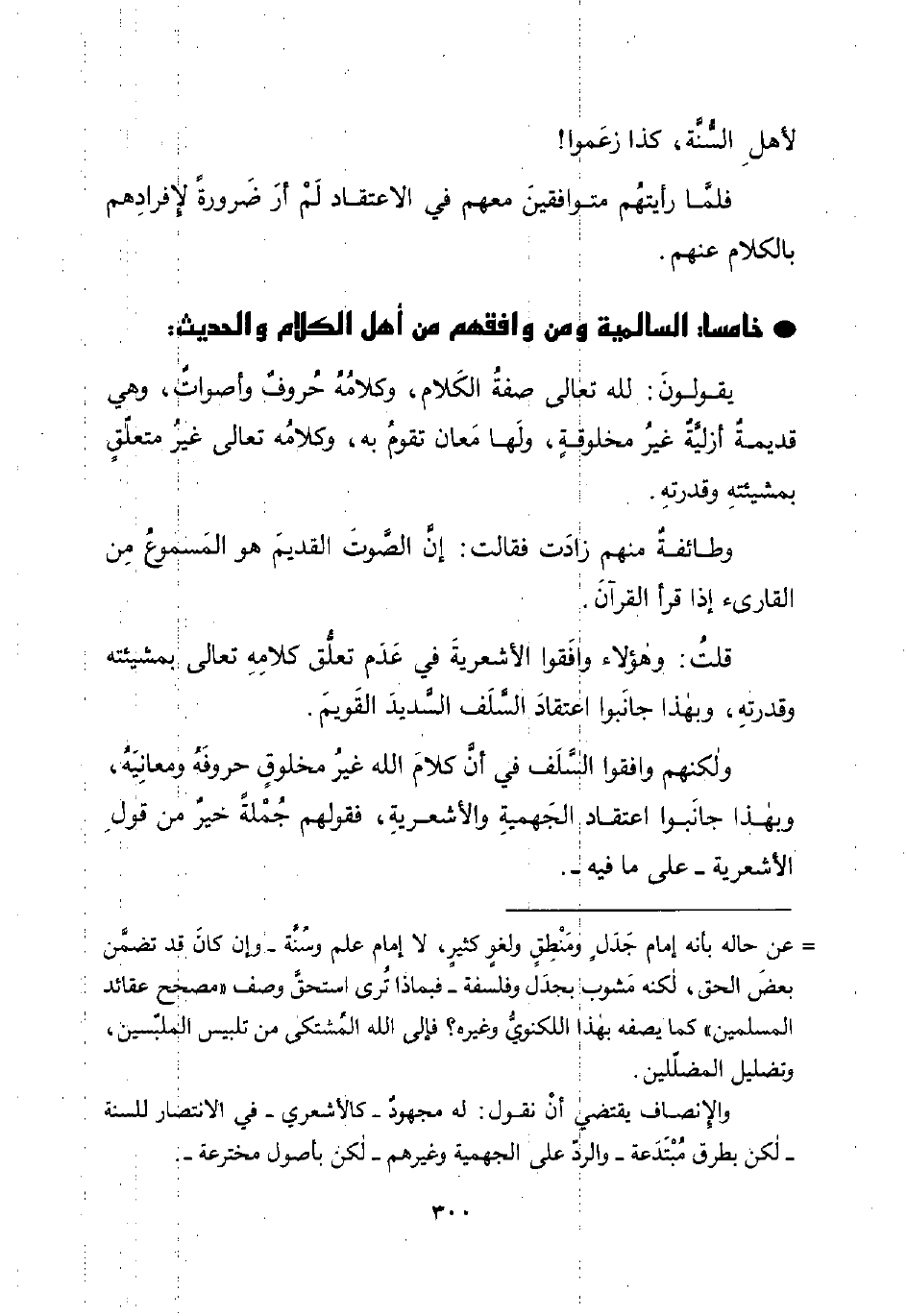 • خامسا: السالمية ومن وافقهم من أهل الكلام والحديث:
