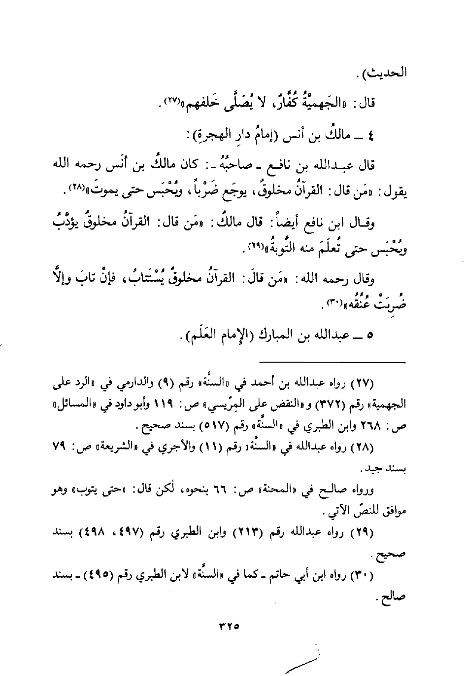 (¬27) رواه عبد الله بن أحمد في "السنَّة" رقم (9) والدارمي في "الرد على الجهمية" رقم (372) و"النقض على المِرّيسي" ص: 119 وأبو داود في "المسائل" ص: 268 وابن الطبري في "السنَّة" رقم (517) بسند صحيح.