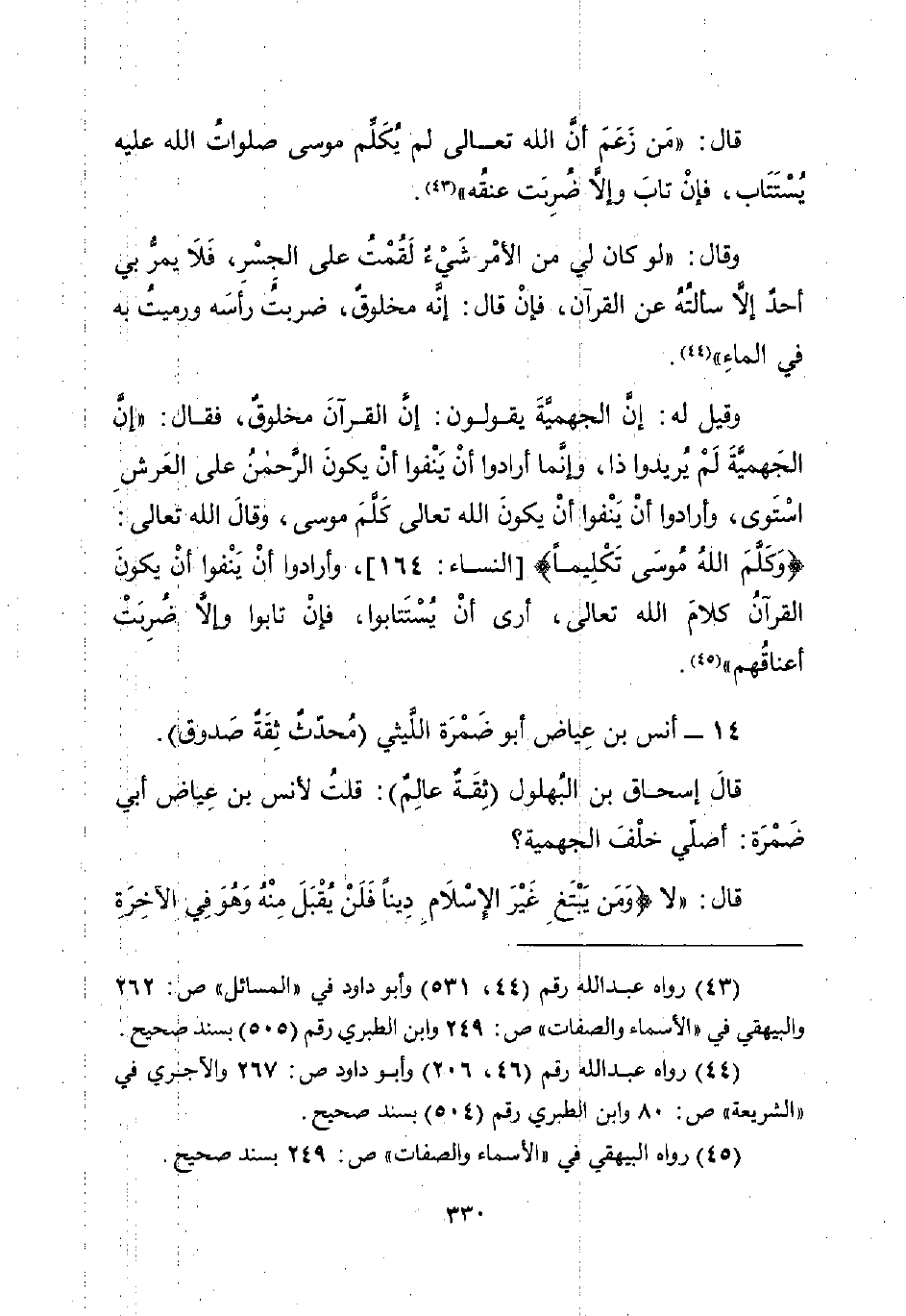 (¬44) رواه عبد الله رقم (46، 206) وأبو داود ص: 267 والآجري في "الشريعة" ص: 80 وابن الطبري رقم (504) بسند صحيح.