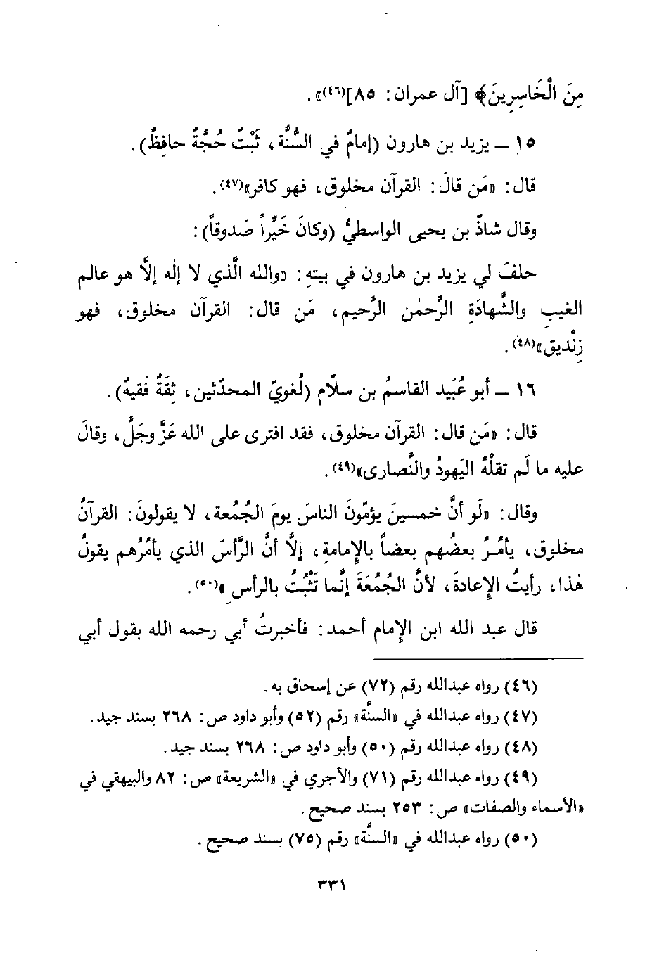 (¬47) رواه عبد الله في "السنَّة" رقم (52) وأبو داود ص: 268 بسند جيد.