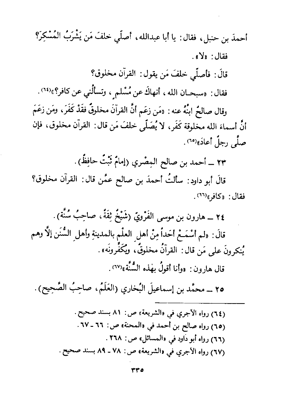 (¬65) رواه صالح بن أحمد في "المحنة" ص: 66 - 67.