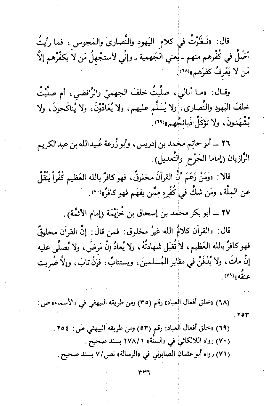 (¬71) رواه أبو عثمان الصابوني في "الرسالة" نص/7 بسند صحيح.
