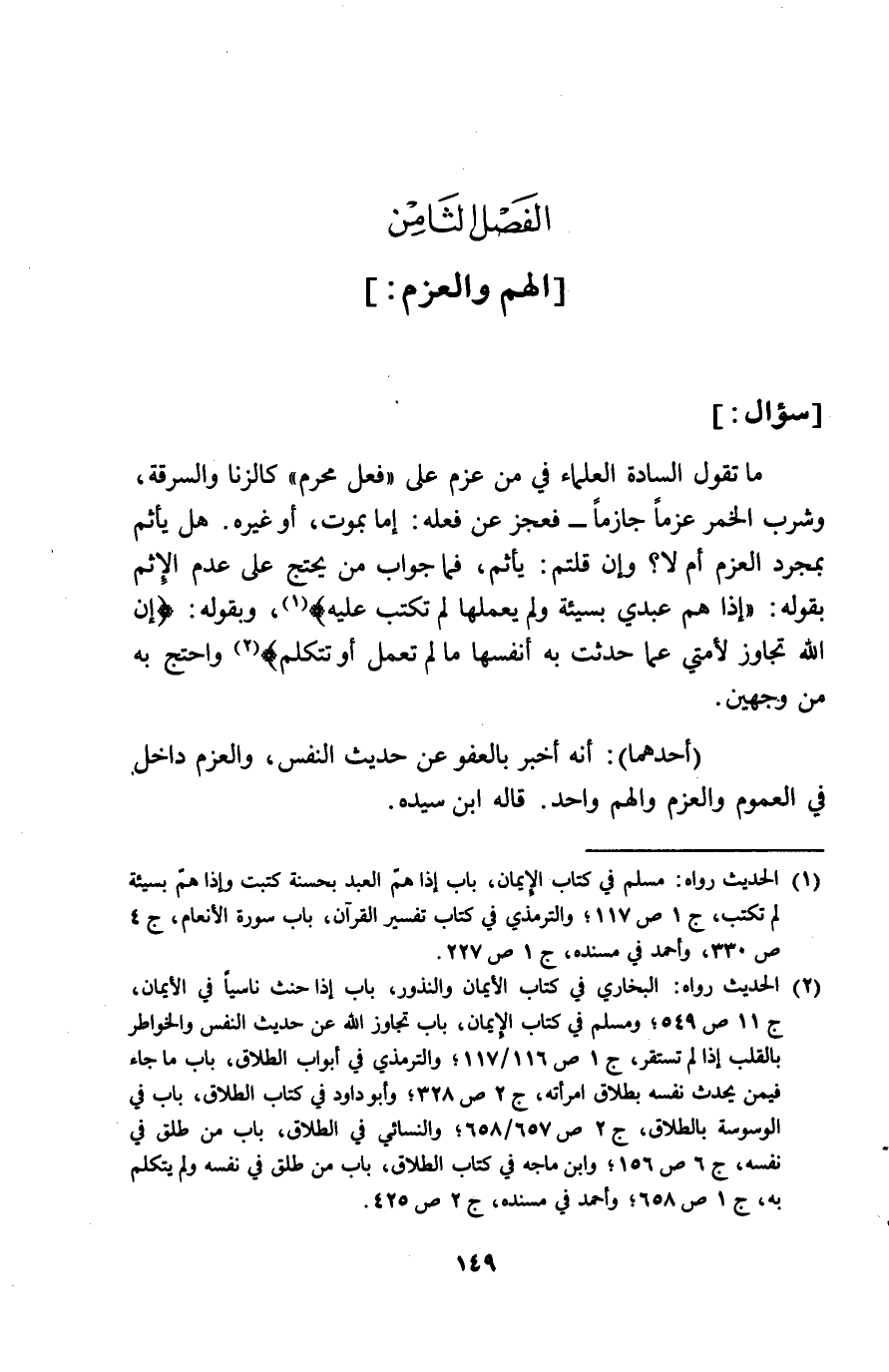 الْفَصْل الثَّامِن الْهم والعزم