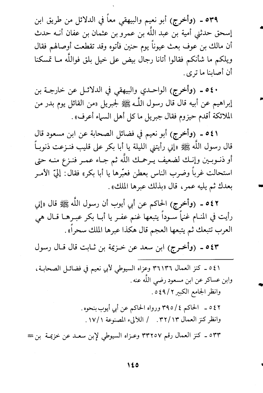 وأخرج الحاكم عن أبي أيوب أن رسول الله صلى الله عليه وسلم قال:) إني رأيت في المنام غنما سودا يتبعها غنم عفر، يا أبا بكر عبرها، قال: هي العرب تتبعك، ثم يتبعها العجم قال: هكذا عبرها الملك سحرا (.
