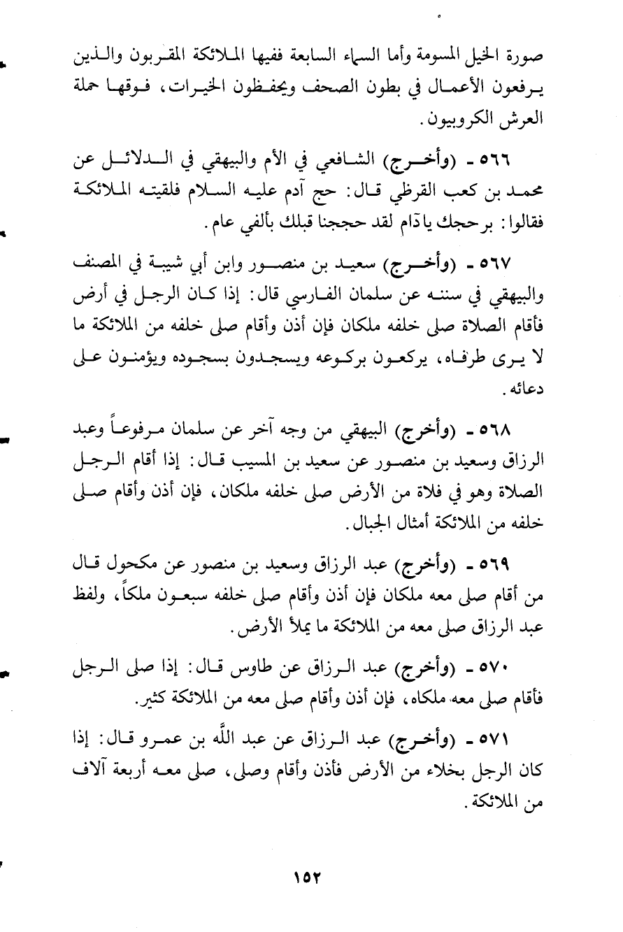 وأخرج سعيد بن منصور وابن أبي شيبة في المصنف والبيهقي في سننه عن سلمان الفارس قال: إذا كان الرجل في أرض فىء فأقام الصلاة صلة خلفه ملكان فإن أذن وأقام صلى خلفه من الملائكة ما لا يرى طرفاه، يركعون بركوعه ويسجدون بسجوده ويؤمنون على دعائه.