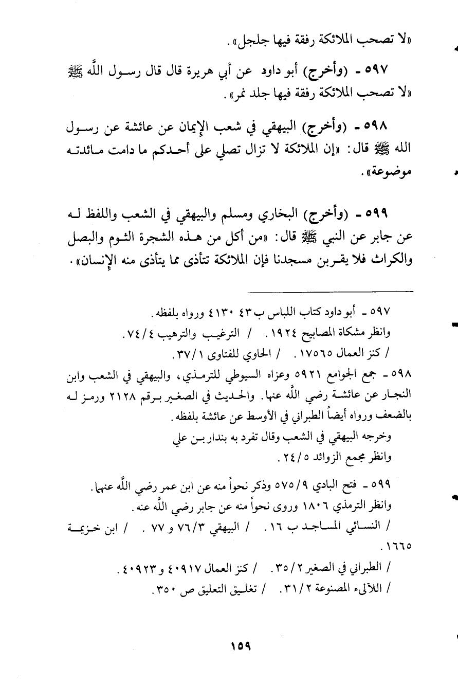 وأخرج أبو داود عن أبي هريرة قال: قال رسول الله صلى الله عليه وسلم:) لا تصحب الملائكة رفقة فيها جلد نمر (.
