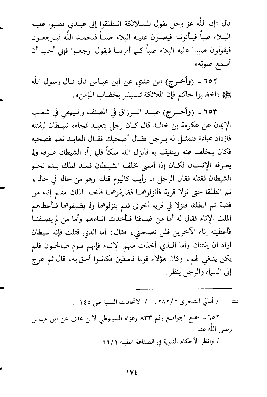 وأخرج ابن عدي عن ابن عباس قال: قال رسول الله صلى الله عليه وسلم:) اخضبوا لحاكم فإن الملائكة تستبشر بخضاب المؤمن (.