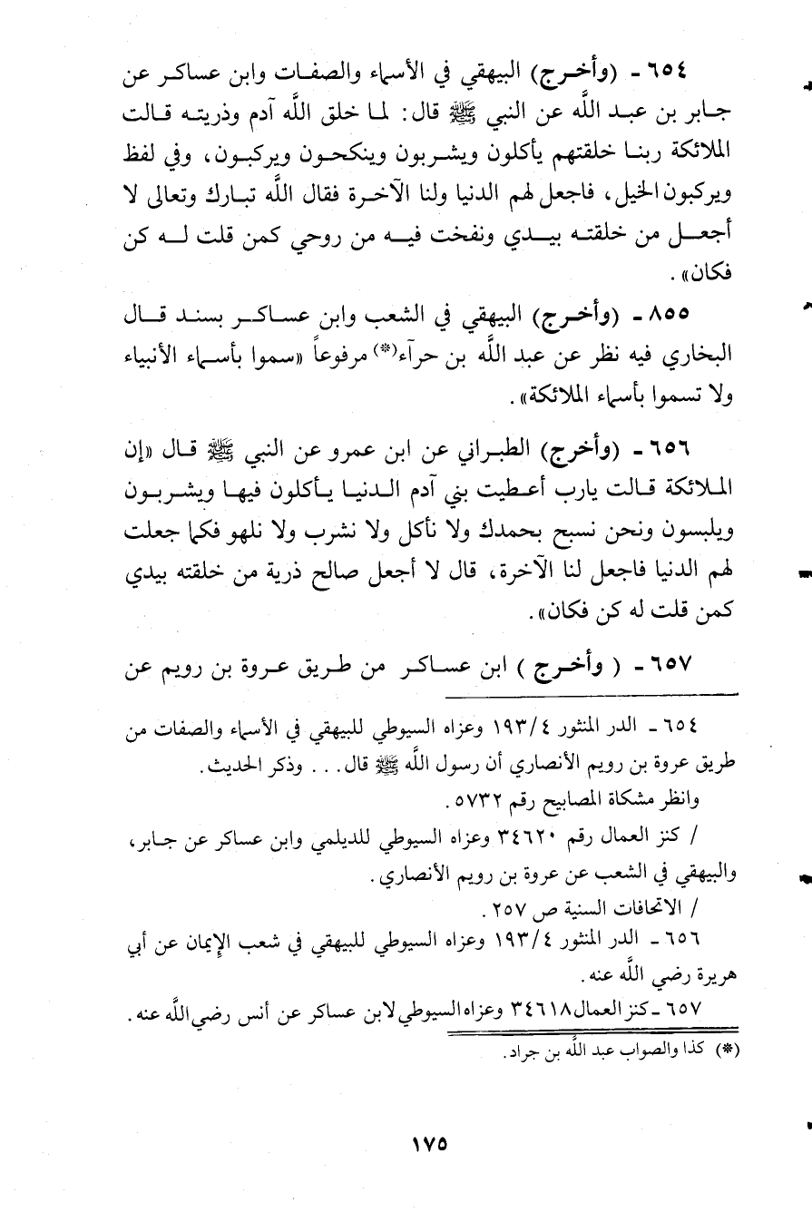 وأخرج البيهقي في الشعب وابن عساكرل - بسند قال البخاري: فيه نظر - عن عبد الله حراء مرفوعا " سموا بأسماء الأنبياء، ولا تسموا بأسماء الملائكة (.