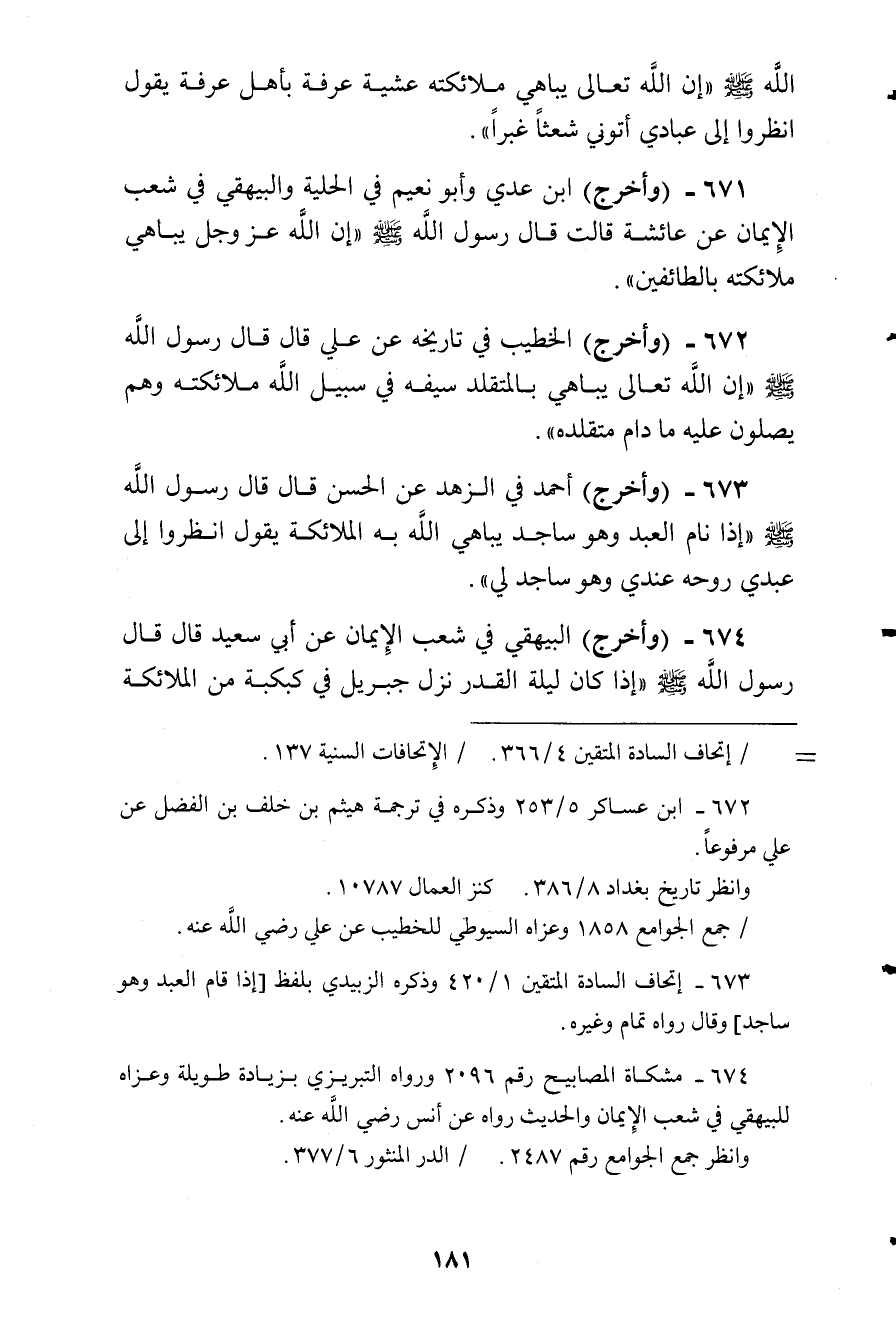 وأخرج ابن عدي وأبو نعيم في الحلية والبيهقي في شعب الإيمان عن عائشة قالت: قال رسول الله صلى الله عليه وسلم:) إن الله عز وجل يباهي ملائكته بالطائفين (.