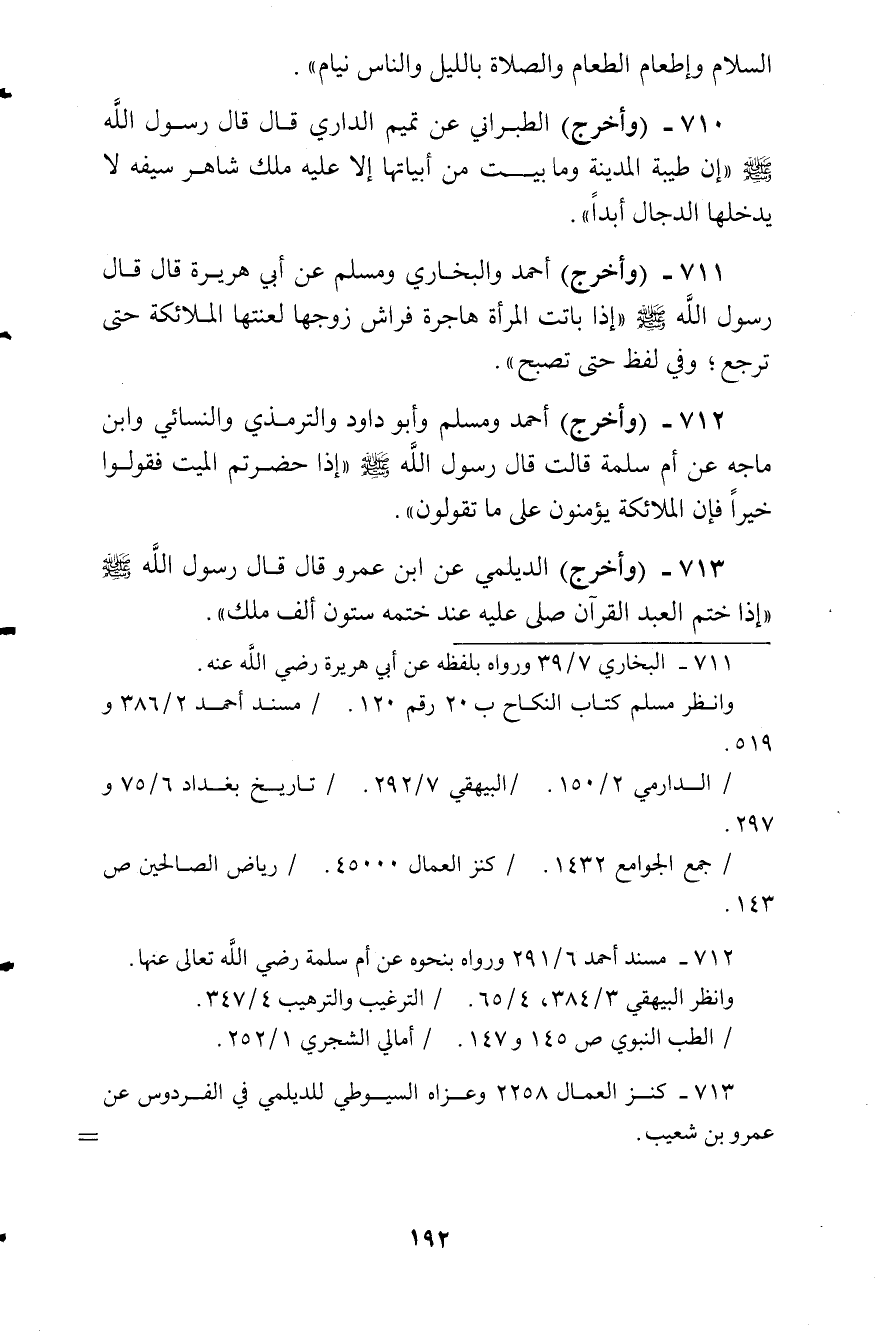 وأخرج أحمد ومسلم وأبو داؤد والترمذي والنسائي وابن ماجه عن أم سلمة قالت: قال رسول الله صلى الله عليه وسلم:) إذا حضرتم الميت فقولوا خيرا، فإن الملائكة يؤمنون على ما تقولون (.