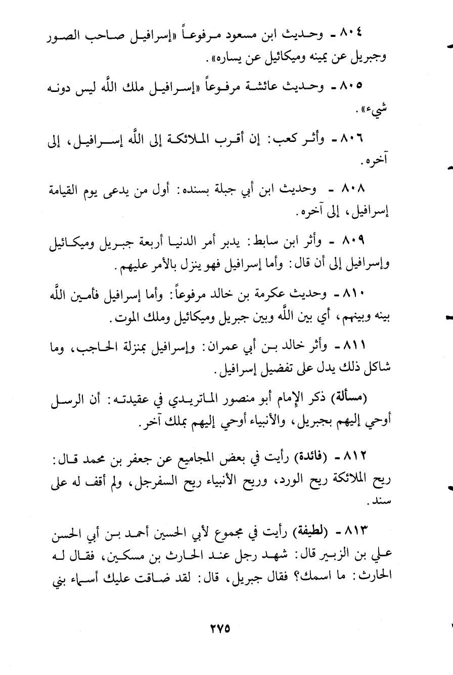 وحديث ابن مسعود مرفوعا:) إسرافيل صاحب الصور وجبريل عن يمينه وميكائيل عن يساره (.