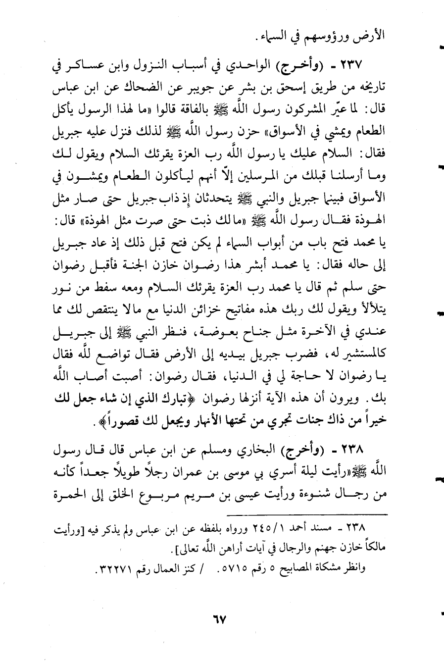 وأخرج البخارى ومسلم عن ابن عباس قال: قال رسول الله صلى الله عليه وسلم:) رأيت ليلة أسرى بى، موسى بن عمران رجلا طويلا جعدا كأنه من رجال شنوءة، ورأيت عيسى ابن مريم مربوع، الخلق إلى الحمرة،
