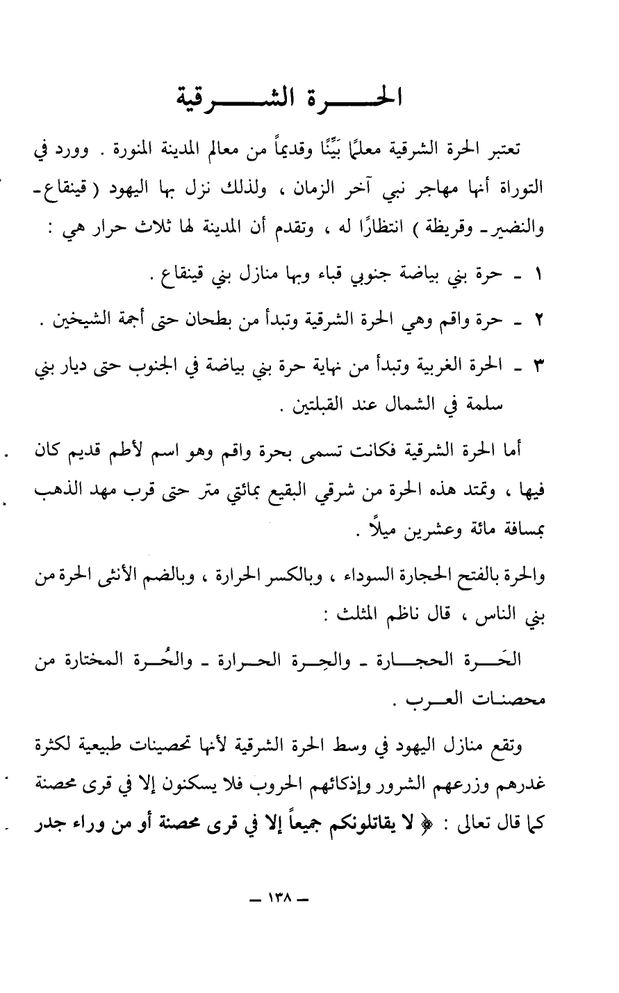 وتقع منازل اليهود في وسط الحرة الشرقية لأنها تحصينات طبيعية لكثرة غدرهم وزرعهم الشرور وإذكائهم الحروب فلا يسكنون إلا في قرى محصنة كما قال تعالى: (لا يقاتلونكم جميعاً إلا في قرى محصنة أو من وراء جدر