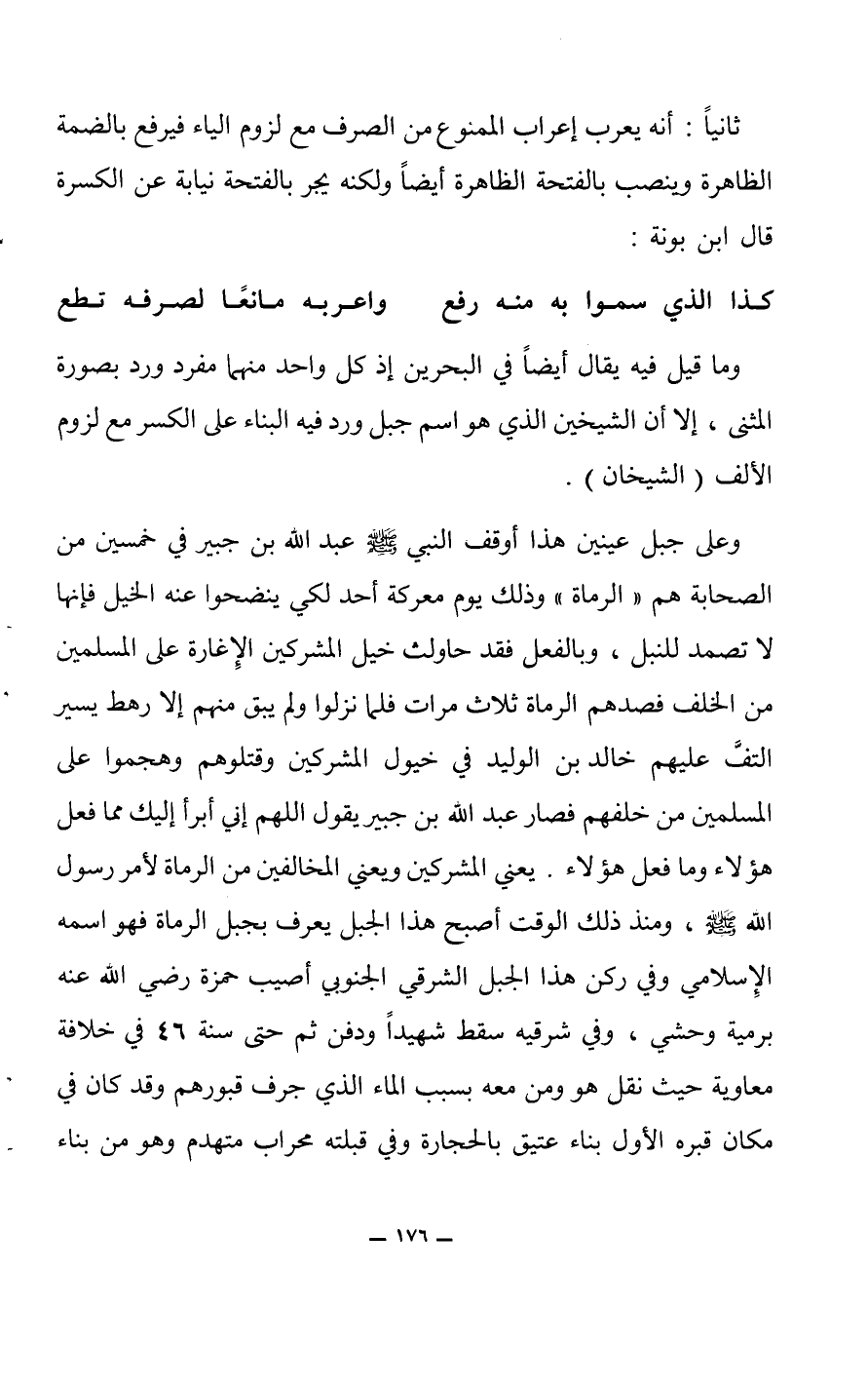 ثانياً: أنه يعرب إعراب الممنوع من الصرف مع لزوم الياء فيرفع بالضمة الظاهرة وينصب بالفتحة الظاهرة أيضاً ولكنه يجر بالفتحة نيابة عن الكسرة قال ابن بونة: