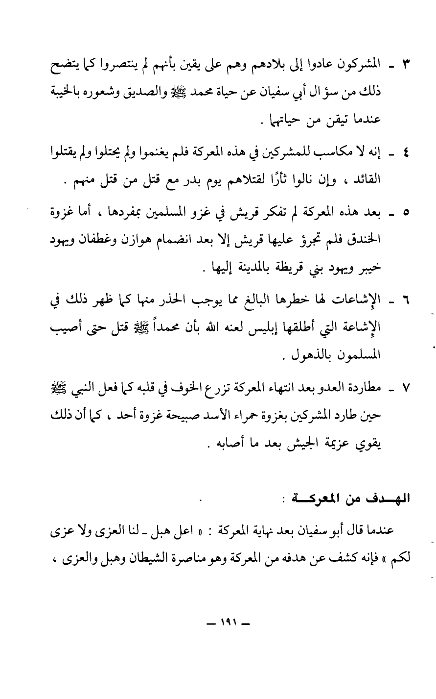 5 - بعد هذه المعركة لم تفكر قريش في غزو المسلمين بمفردها، أما غزوة الخندق فلم تجرؤ عليها قريش إلا بعد انضمام هوازن وغطفان ويهود خيبر ويهود بني قريظة بالمدينة إليها.