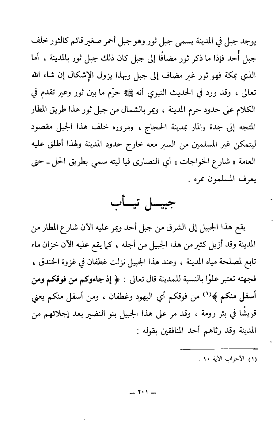 يقع هذا الجبيل إلى الشرق من جبل أحد ويمر عليه الآن شارع المطار من المدينة وقد أزيل كثير من هذا الجبيل من أجله، كما يقع عليه الآن خزان ماء تابع لمصلحة مياه المدينة، وعند هذا الجبيل نزلت غطفان في غزوة الخندق، فجهته تعتبر علواً بالنسبة للمدينة قال تعالى: (إذ جاءوكم من فوقكم ومن أسفل منكم) (1) من فوقكم أي اليهود وغطفان، ومن أسفل منكم يعني قريشاً في بئر رومة، وقد مر على هذا الجبيل بنو النضير بعد إجلائهم من المدينة وقد رثاهم أحد المنافقين بقوله: