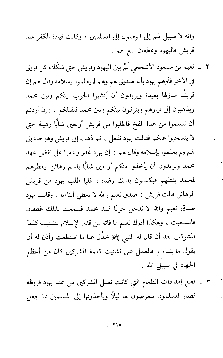 3 - قطع إمدادات الطعام التي كانت تصل المشركين من عند يهود قريظة فصار المسلمون يتعرضون لها ليلاً ويأخذونها إلى المسلمين مما جعل