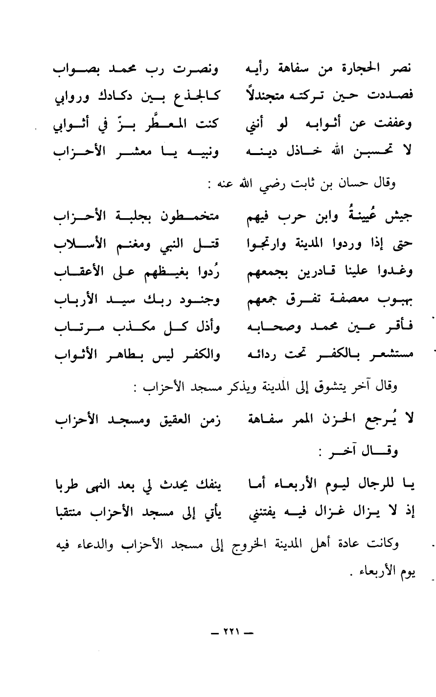 وقال آخر يتشوق إلى المدينة ويذكر مسجد الأحزاب: