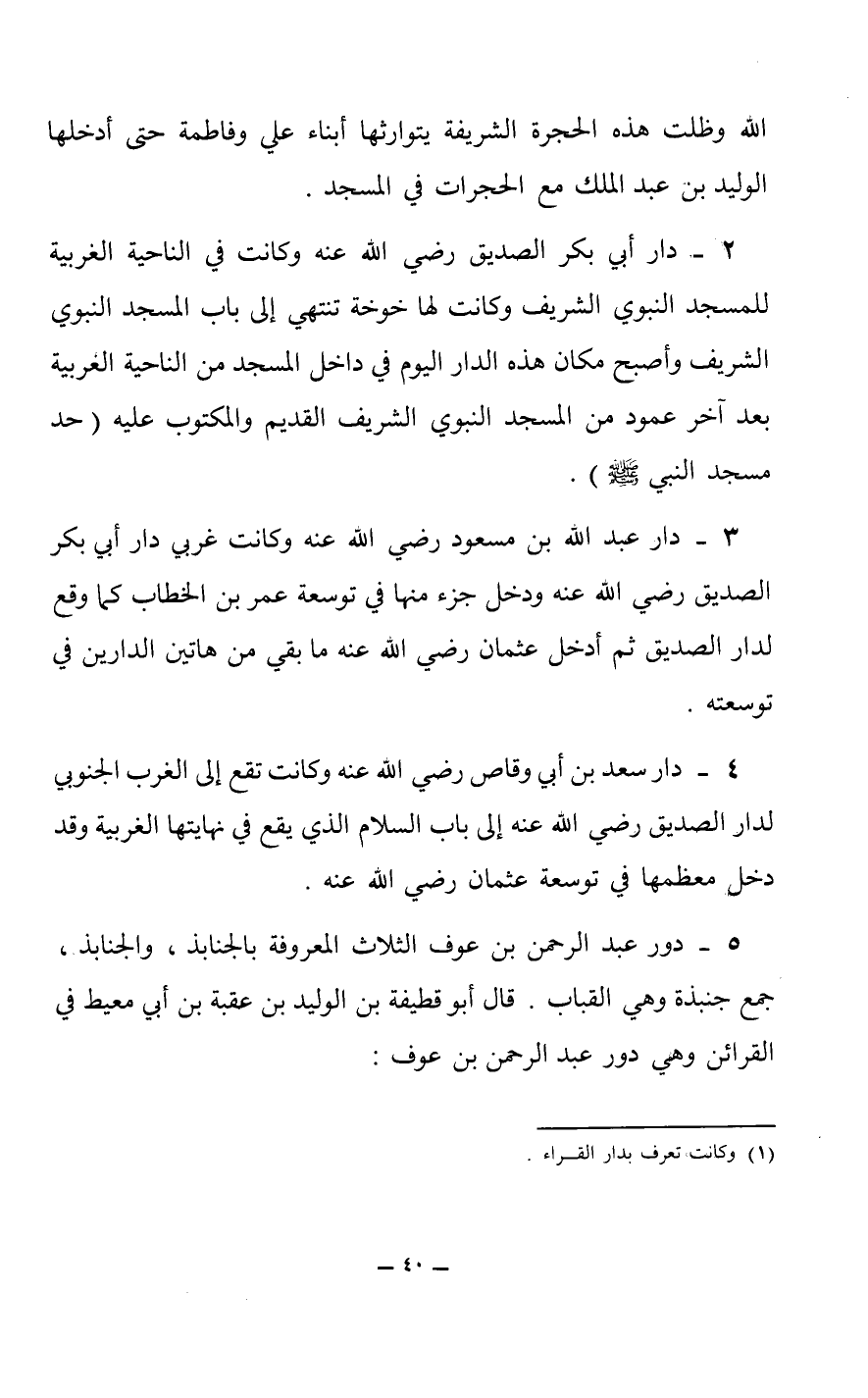 5 - دور عبد الرحمن بن عوف الثلاث المعروفة بالجنابذ، والجنابذ، جمع جنبذة وهي القباب.