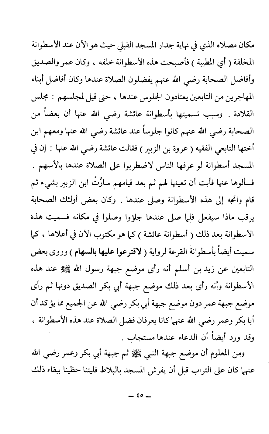 فسألوها عنها فأبت أن تعينها لهم ثم بعد قيامهم سارت ابن الزبير بشيء ثم قام واتجه غلى هذه الاسطوانة وصلى عندها.