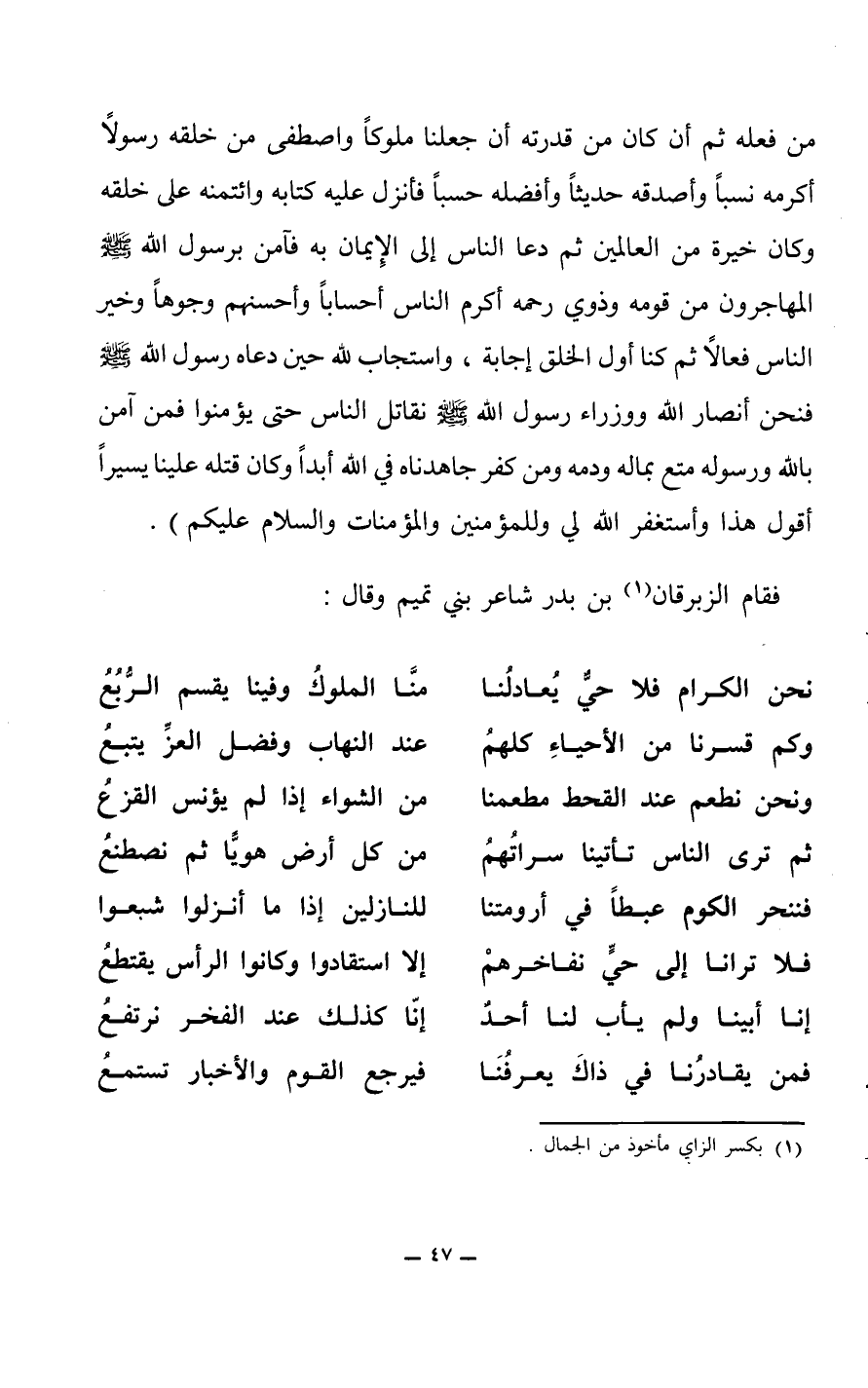 فقام الزبرقان (1) بن بدر شاعر بني تميم وقال: