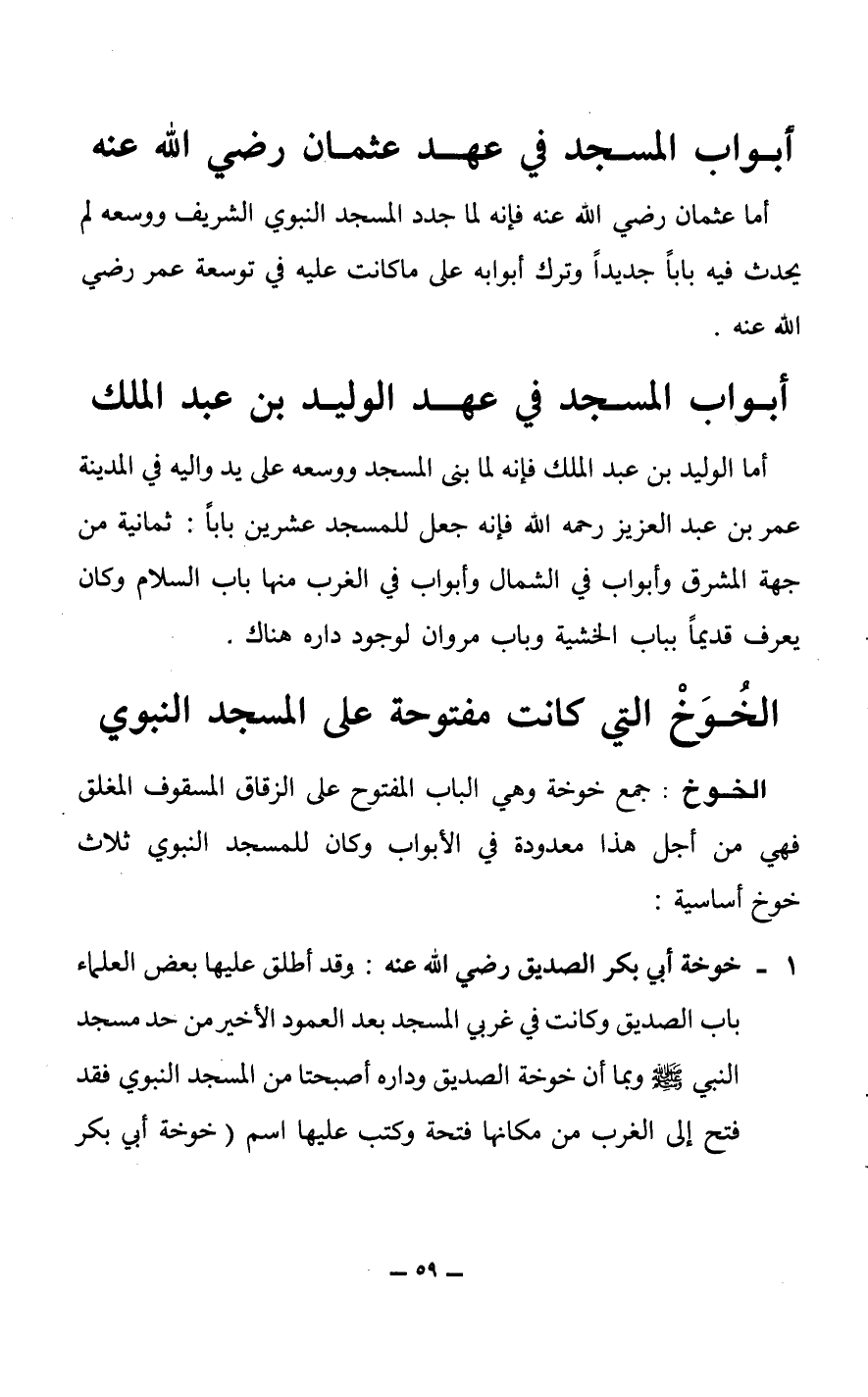 أما عثمان رضي الله عنه فإنه لما جدد المسجد النبوي الشريف ووسعه لم يحدث فيه باباً جديداً وترك أبوابه على ما كانت عليه في توسعة عمر رضي الله عنه.