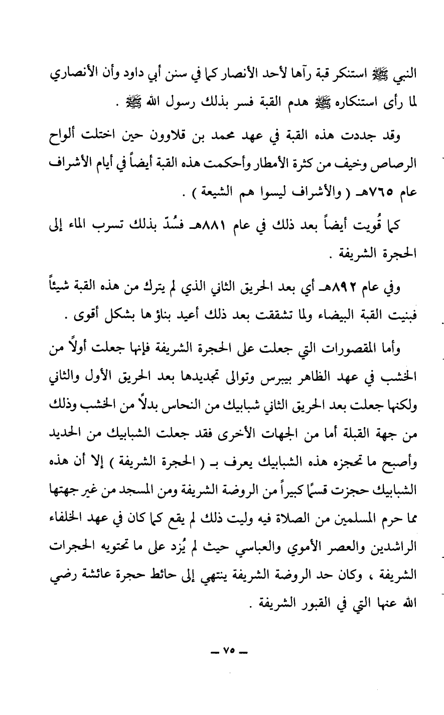 كما قويت أيضاً بعد ذلك في عام 881 هـ فسد بذلك تسرب الماء إلى الحجرة الشريفة.