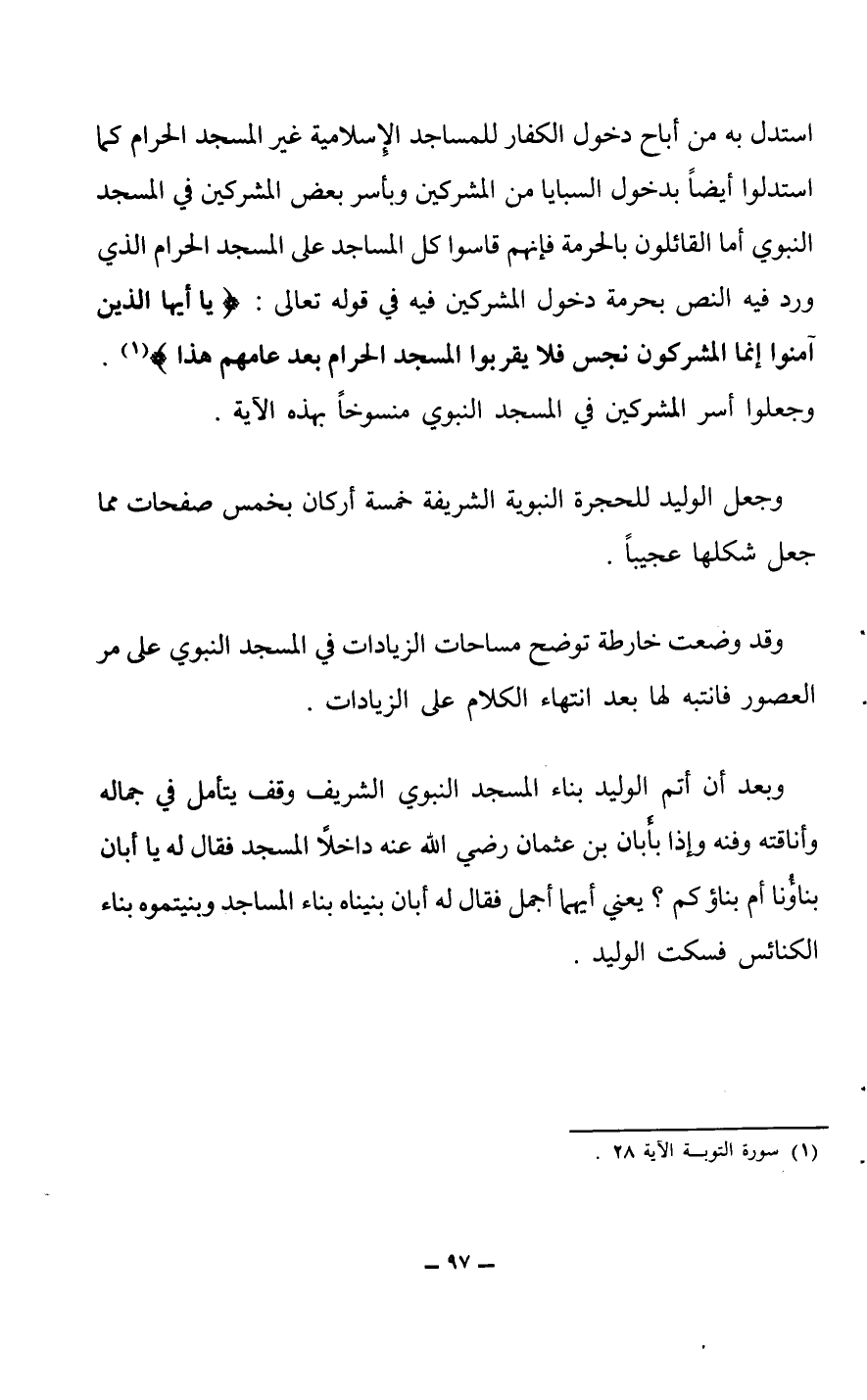 وبعد أن أتم الوليد بناء المسجد النبوي الشريف وقف يتأمل في جماله وأناقته وفنه وإذا بأبان بن عثمان رضي الله عنه داخلاً المسجد فقال له يا أبان بناؤنا أم بناؤكم؟ يعني أيهما أجمل فقال له ابان بنيناه بناء المساجد وبنيتموه بناء الكنائس فسكت الوليد.