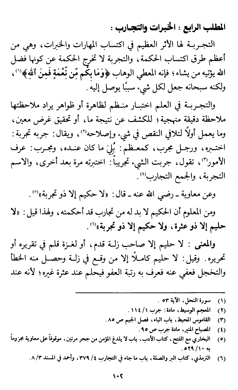 ومن المعلوم أن الحكيم لا بد له من تجارب قد أحكمته، ولهذا قيل: "لا حليم إلا ذو عثرة، ولا حكيم إلا ذو تجربة" (¬6).