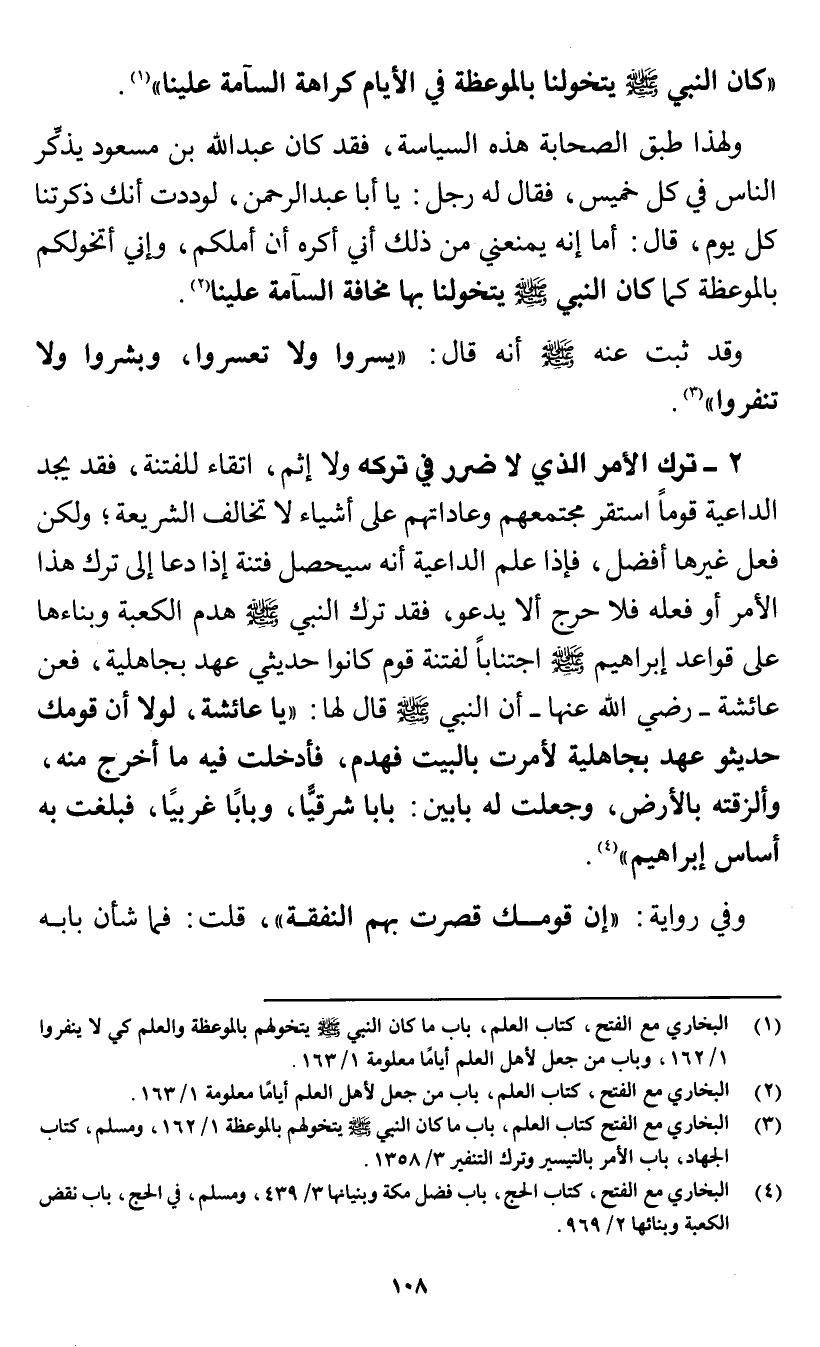 (¬3) البخاري مع الفتح كتاب العلم، باب ما كان النبي صلى الله عليه وسلم يتخولهم بالموعظة 1/ 162، ومسلم، كتاب الجهاد، باب الأمر بالتيسير وترك التنفير3/ 1358.