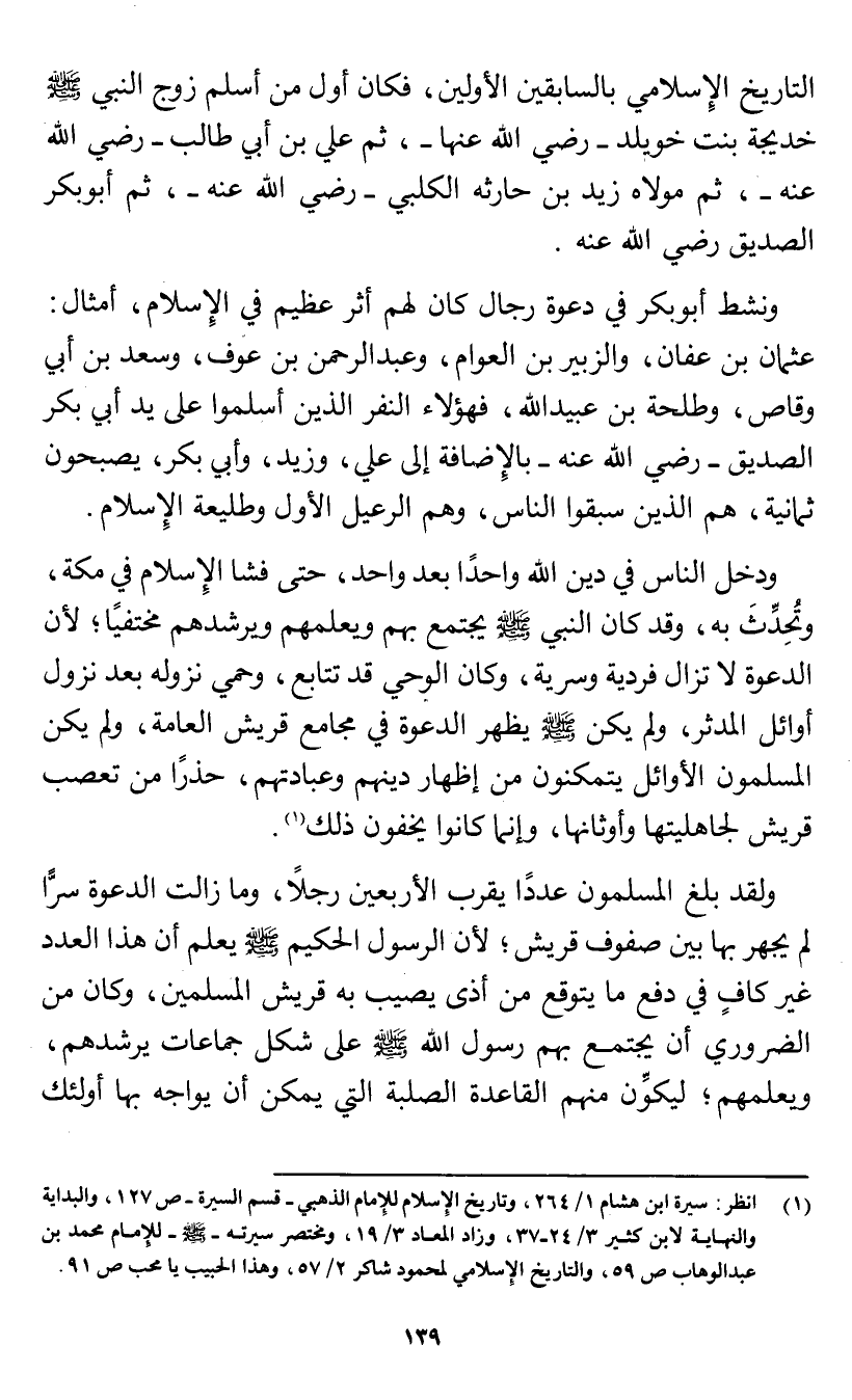 (¬1) انظر: سيرة ابن هشام1/ 264، وتاريخ الإسلام للِإمام الذهبي- قسم السيرة- ص127، والبداية والنهاية لابن كثير3/ 24 - 37، وزاد المعاد 3/ 19، ومختصر سيرته- صلى الله عليه وسلم - للِإمام محمد بن عبد الوهاب ص59، والتاريخ الإسلامي لمحمود شاكر2/ 57، وهذا الحبيب يا محب ص91.