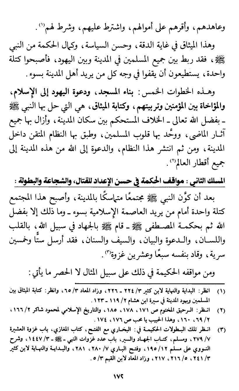 (¬3) انظر تلك البطولات الحكيمة في: البخاري مع الفتح، كتاب المغازي، باب غزوة العشيرة 7/ 279، ومسلم، كتاب الجهاد والسير، باب عددذ غزوات النبي-صلى الله عليه وسلم -3/ 1447، وشرح النووي على مسلم2 1/ 195، وفتح الباري 7/ 280، 281، والبداية والنهاية لابن كثير 3/ 241، 5/ 216، 217، وزاد المعاد لابن القيم 3/ 5.