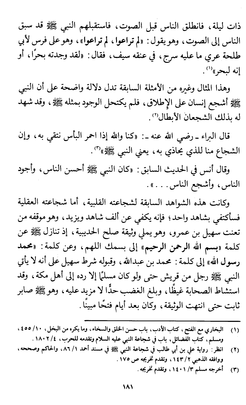 (¬1) البخاري مع الفتح، كتاب الأدب، باد حسن الخلق والسخاء، وما يكره من البخل، 10/ 455، ومسلم، كتاب الفضائل، باب في شجاعة النبي عليه السلام وتقدمه للحرب، 4/ 1802.