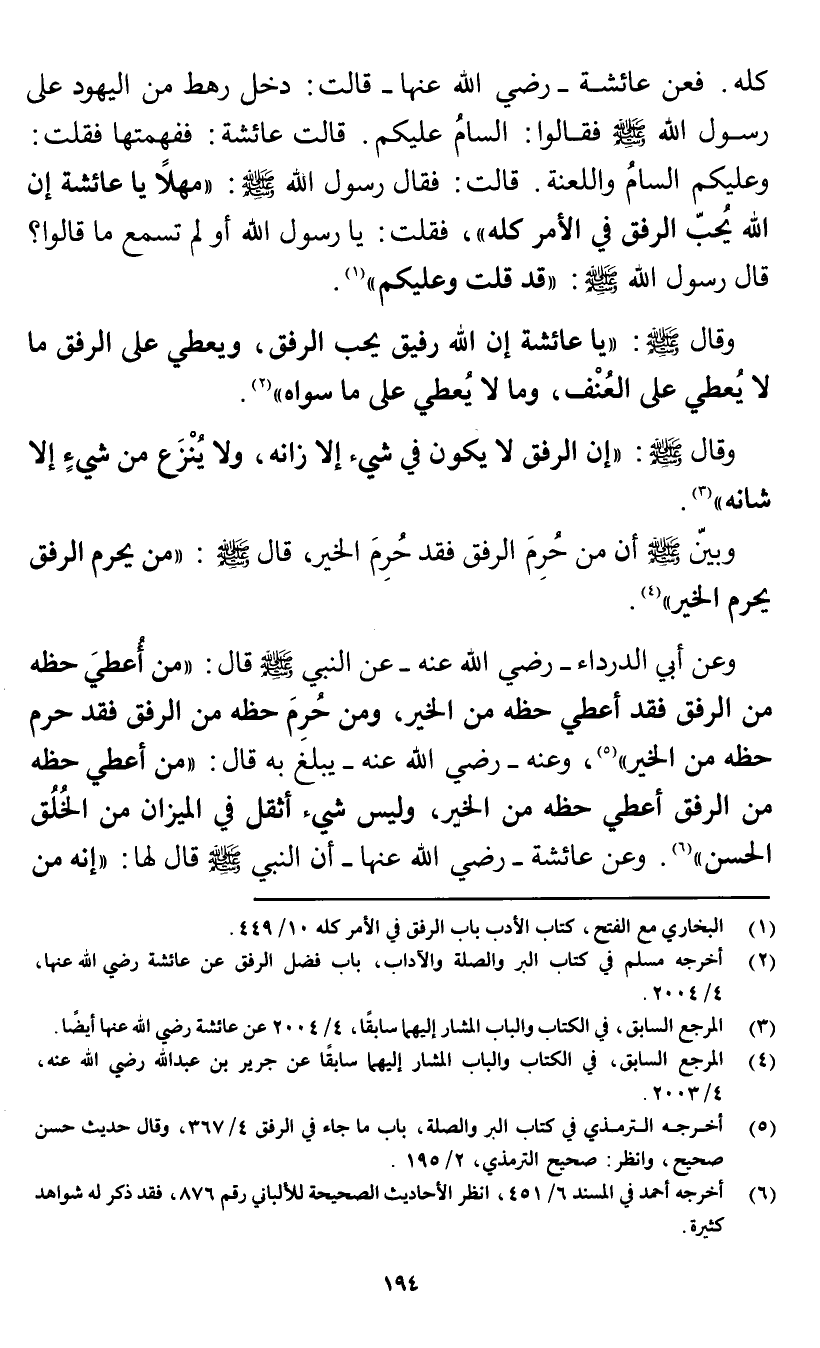 (¬2) أخرجه مسلم في كتاب البر والصلة والآداب، باب فضل الرفق، عن عائشة رضي الله عنها، 4/ 2004.