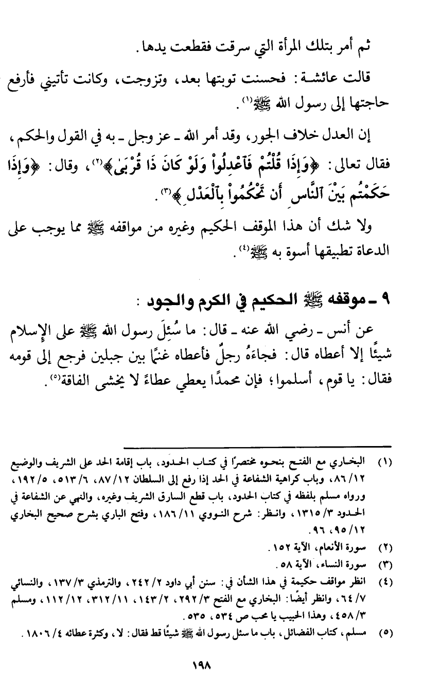 (¬4) انظر مواقف حكيمة في هذا الشأن في: سنن أبي داود 2/ 242، والترمذي 3/ 137، والنسائي 7/ 64، وانظر أيضًا: البخاري مع الفتح 3/ 292، 2/ 143، 11/ 312، 12/ 112، ومسلم 3/ 458، وهذا الحبيب يا محب ص 534، 535.