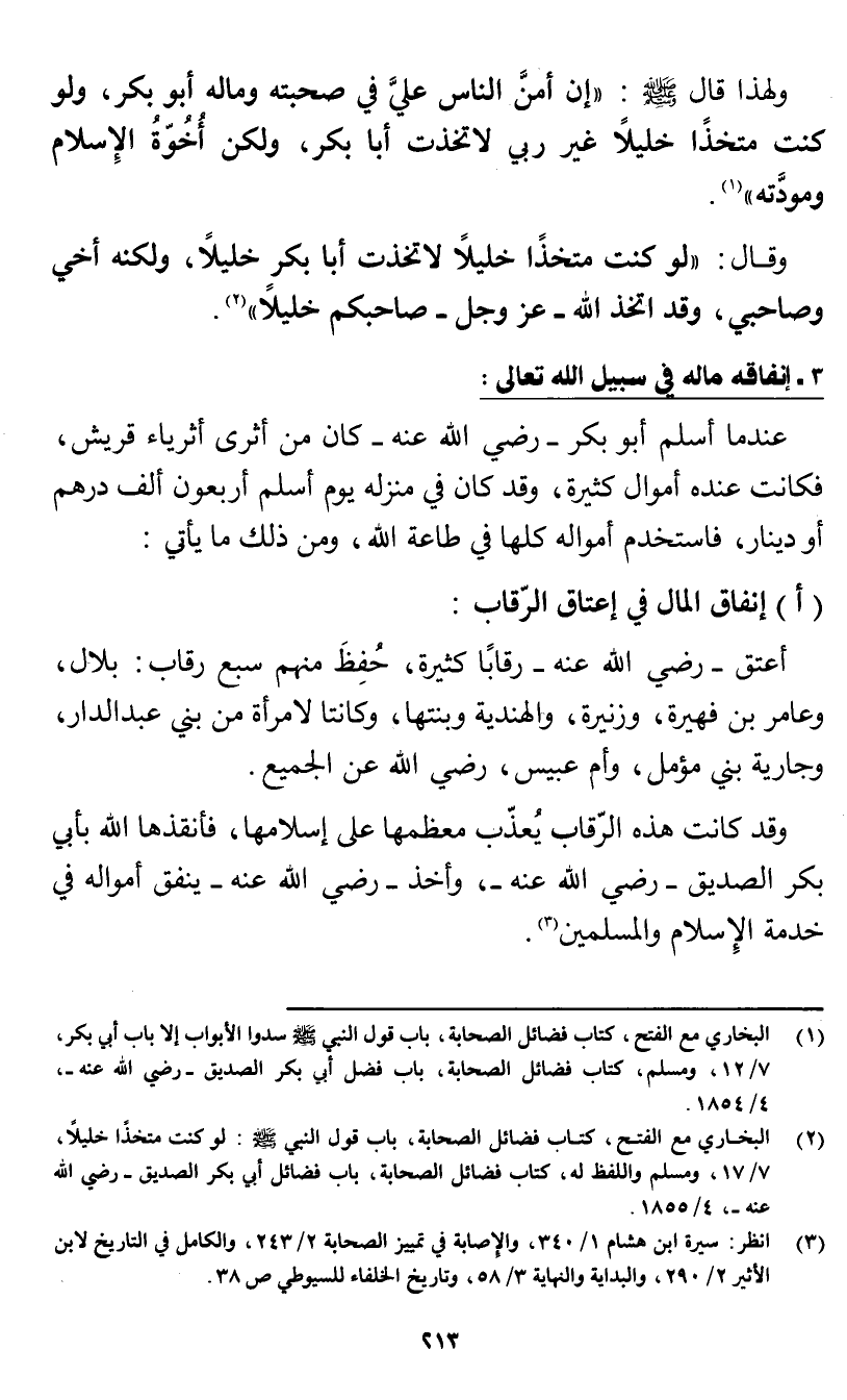 (¬2) البخاري مع الفتح، كتاب فضائل الصحابة، باب قوت النبي صلى الله عليه وسلم لو كنت متخذًا خليلًا: 7/ 17، ومسلم واللفظ له، كتاب فضائل الصحابة، باب فضائل أبي بكر الصديق - رضي الله عنه -، 4/ 1855.