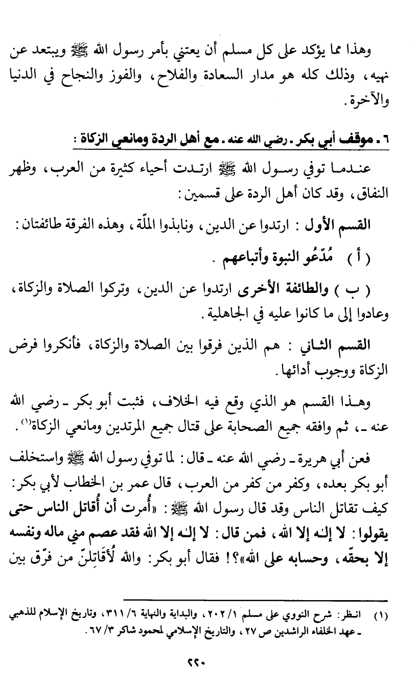 6 - موقف أبى بكر - رضي الله عنه - مع أهل الردة ومانعي الزكاة: