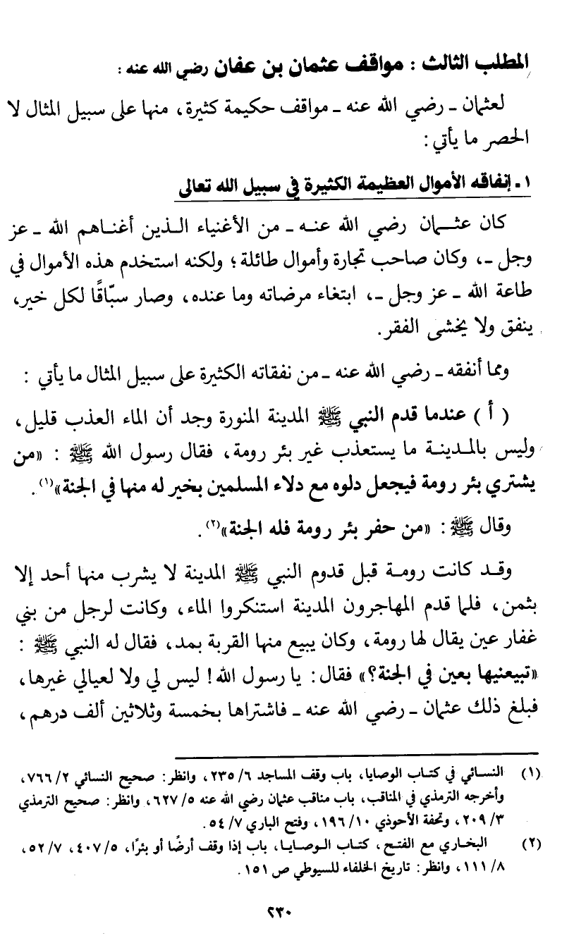 (¬1) النسائي في كتاب الوصايا، باب وقف المساجد 6/ 235، وانظر: صحيح النسائي 2/ 766، وأخرجه الترمذي في المناقب، باب مناقب عثمان رضي الله عنه 5/ 627، وانظر: صحيح الترمذي 3/ 209، وتحفة الأحوذي 10/ 196، وفتح الباري 7/ 54.