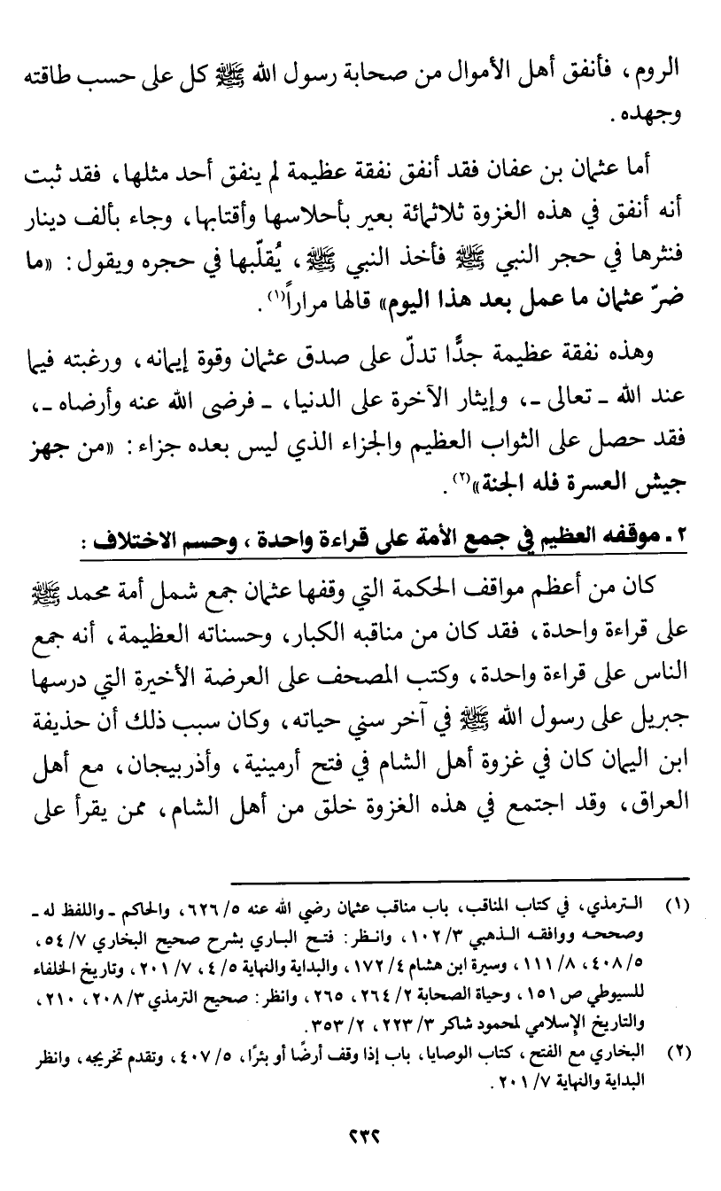 (¬1) الترمذي، في كتاب المناقب، باب مناقب عثمان رضي الله عنه 5/ 626، والحاكم - واللفظ له - وصححه ووافقه الذهبي 3/ 102، وانظر: فتح الباري بشرح صحيح البخاري 7/ 54، 5/ 458، 8/ 111، وسيرة ابن هشام 4/ 172، والبداية والنهابة 5/ 4، 7/ 201، وتاريخ الخلفاء للسيوطي ص 151، وحياة الصحابة 2/ 264، 265، وانظر: صحيح الترمذي 3/ 208، 210، والتاريخ الإِسلامي لمحمود شاكر 3/ 223، 2/ 353.